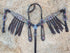 MOUSM Western Headstall & Breast Collar Set, crafted from genuine Argentina cow leather for superior durability and comfort. This set features a holographic cracker print, creating a dazzling, eye-catching effect. Embellished with red and black stones, it offers a bold contrast, while the brown leather fringe adds a touch of Western flair. Finished with antique copper hardware for strength and a rustic aesthetic, this set is perfect for rodeos, competitions, and trail rides.