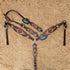 Western Headstall and Breast Collar Set features beautiful Southwest hand carving, accented with copper buck stitching and surrounded by copper hardware for a classic Western look. Designed for durability and style, this Breast Collar and Bridle Set is perfect for riders who appreciate fine craftsmanship and unique details.