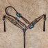 MOUSM Western horse tack Set Handcrafted from genuine Argentina cow leather, this headstall and breast collar set offers both rugged performance and refined style, features intricate desert-style carving on the breast collar, paired with copper rawhide crisscross braiding along the edges for a distinctive Western flair. Both the headstall and breast collar are adorned with radiant topaz stones that catch the light beautifully, adding a rich, eye-catching detail to the overall look. Completing the design are copper-engraved floral rope-edge conchos, adding depth and traditional Western character.