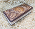 MOUSM Ladies Clutch Bag – Floral Carved Cowhide Leather with Antique Finish, Handmade Distressed Western Leather Bifold-Style Evening & Party Wallet for Women
