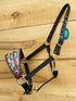 MOUSM Western Bronc Halter delivers a striking combination of tradition and flair. Handcrafted from genuine Argentina cow leather, this halter features bold Congress conchos with stones and a distinctive black & white Southwest print, further enhanced with sparkling red and black stone details. Finished with all antique copper hardware, it's built to impress in both form and function.