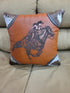 Mosum Genuine Leather Decorative Cushion Cover Handmade Square Shape Cushion Cover Hand Painted Rider on Running Horse 18"x18" Cushion Cover